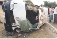 खाई पर गिरते ही आग 30 फीट नीचे गिरा कार और मौत