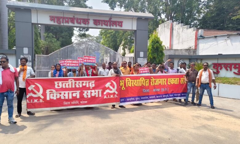 एसईसीएल कुसमुंडा क्षेत्र के प्रभावित गांव के भू विस्थापितों ने छत्तीसगढ़ किसान सभा और भू विस्थापित रोजगार एकता संघ के नेतृत्व में लंबित रोजगार प्रकरणों का तत्काल निराकरण,आउट सोर्सिंग कार्यों में प्रभावित भू विस्थापितों को रोजगार प्रदान करने,नए पुराने नाम पर मुआवजा कटौती बंद करने,विस्थापित सभी परिवार को बसावट देने एवं बसावट गांव में मूलभूत सुविधाएं प्रदान करने की मांग को लेकर कोल इंडिया के मेगा प्रोजेक्ट कुसमुंडा कार्यालय का कर दिया है।