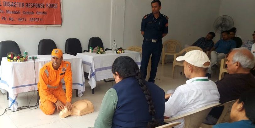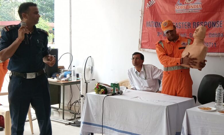 एनडीआरएफ टीम ने बच्चों के मामले में बाह्य वस्तु द्वारा सांस नली में रूकावट को दूर करने के उपाय को लाइव डेमो देकर बताया गया।