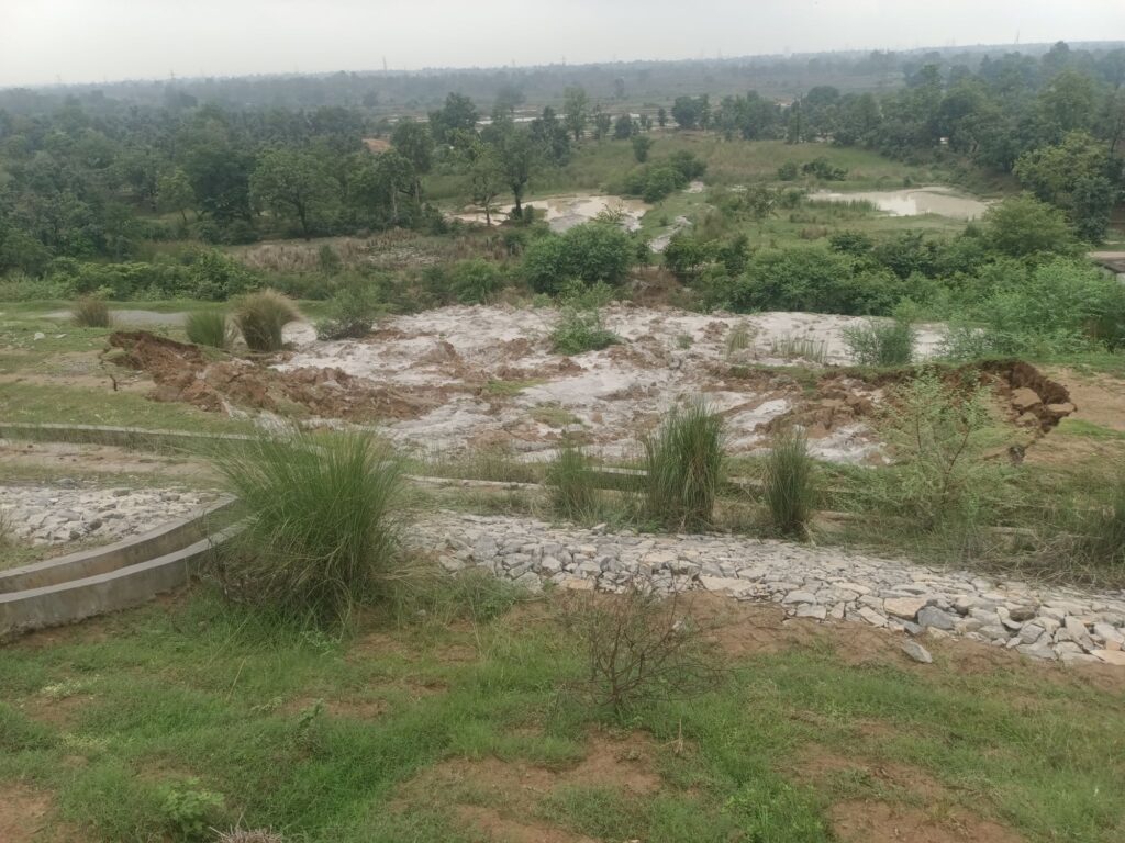सीएसईबी पावर प्लांट के रखड़ बांध का तटबंध तोड़कर बड़ी मात्रा में रख बाहर निकली और नीचे बस्ती में जा घुसी। ग्रामीण दहशत में आ गए। भगदड़ मच गई प्रशासनिक अधिकारी और विद्युत उत्पादन कंपनी के अधिकारी मौके पर पहुंचे और लोगों को राहत देने के लिए ढांढस बंधाया