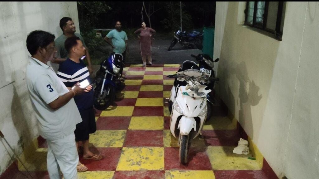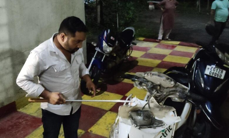 कोरबा – जिले के IT कॉलेज में बने आवासीय परिवार में खड़ी स्कूटी में एक सांप घुसने की घटना सामने आई हैं बीती रात्रि प्रणय राही जो की आईटी कॉलेज के रजिस्टर के पद में हैं वो भोजन के पश्चात् अपने मित्रों के साथ टहल ही रहे थे की अचानक से स्कूटी के अंदर सांप को घुसते हुए देखा तो काफ़ी डर गए, उनको भगाने का प्रयास भी किया गया पर बड़ी तेजी से वो सांप झट से स्कूटी के अंदर घुस