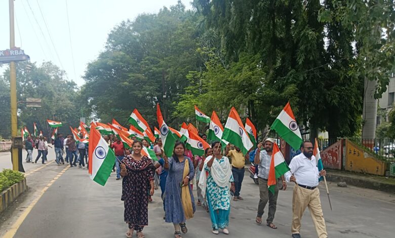 कोरबा आजादी का अमृत महोत्सव और राष्ट्रीय एकता के संदेश को जन-जन तक पहुँचाने के उद्देश्य से “हर घर तिरंगा-हर घर स्वच्छता” अभियान अंतर्गत जनपद पंचायत कोरबा में भव्य तिरंगा रैली का आयोजन किया गया। इस अवसर पर नशा मुक्त भारत महाअभियान के तहत सभी उपस्थित जनों ने नशामुक्त जीवन का संकल्प भी लिया।