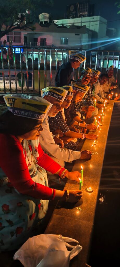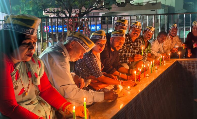 AAP ने रेल हादसे मे जान गंवाने वालों को कैंडल जलाकर दी श्रद्धांजलि