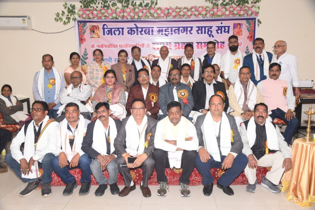 कोरबा में कावेरी रेस्टोरेंट के सभागार में साहू संघ का शपथ ग्रहण डॉ. राजेन्द्र साहू (अस्थि रोग विशेषज्ञ), इंजी, अरविंद साहू आर्किटेक, दिनेश साहू पूर्व जिला उपाध्यक्ष, श्रीमती योगेश्वरी साहू पूर्व जिला उपाध्यक्ष, महारथी साहू पूर्व तहसील अध्यक्ष पोड़ीउपरोड़ा, धर्मेन्द्र साहू अध्यक्ष, संतोष साहू सचिव तहसील हरदीबाजार, नगर निगम के पार्षद सुषमा साहू, फिरत साहू, धनश्री साहू, गिरधारी लाल साहू, पूर्व प्रदेश पदाधिकारी, धनीराम साहू, पूर्व महासचिव, भुवनलाल पूर्व अध्यक्ष कोरबा के गौरवमयी उपस्थिति में सम्पन्न हुआ।