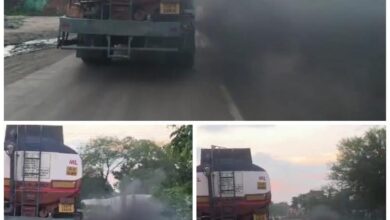 परिवहन विभाग की लापरवाही काले धुएं का गब्बर छोड़ता हुआ ट्रक