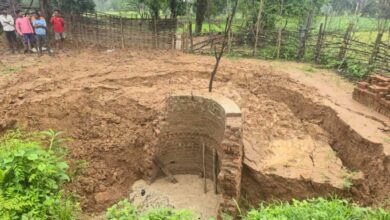 कोरबा जिले के जटगा चौकी क्षेत्र के ग्राम धनवार में भारी बारिश के कारण धंसा कुआं