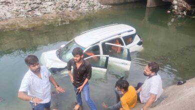 नहर में गिरी गाड़ी लोगों की मदद से गाड़ी में सवार लोगों को निकाला गया बाहर