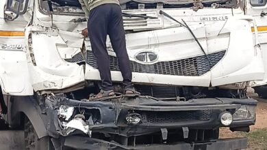 दो ट्रेलर के आमने-सामने भिड़ंत में एक ट्रेलर का ड्राइवर फंसा