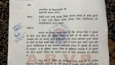 (कोरबा) कमला नेहरू महाविद्यालय के शासकीयकरण की मांग को लेकर अभाविप ने सौंपा ज्ञापन